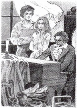 因同情穷鞋匠兄妹而为他们弹琴