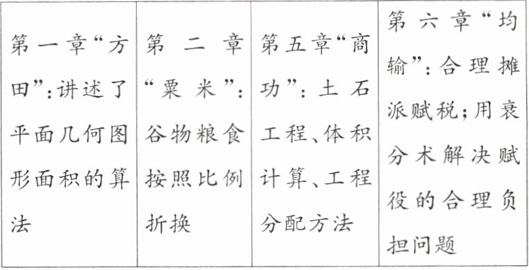 5. 《九章算术》共收录了246个数学问题,分为九章,下表是其部分章节的内容。据此可知,《九章算术》(