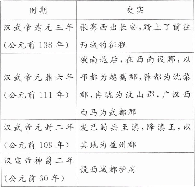 12.(成都市中考)西汉时期,一名普通的郎官满怀坚定信念,忍受大漠的孤寂、落日的苍凉,不畏艰险、勇于开拓,历经13年完成了“凿空”的壮举。这位郎官是(
