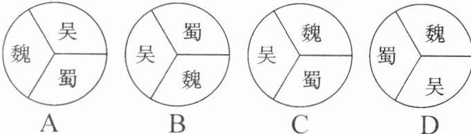 4.【新考法·图示法】图示法是学习历史的一种好方法,它能将复杂的历史较直观形象地展示出来。下面能反映三国鼎立形势的示意图是(
