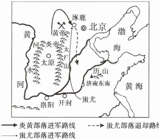 5. (泉州市期末)如图是传说中的一场战争的形势图,这场战争推动了(