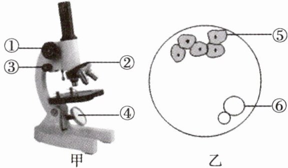 6. (贺州市中考)显微镜的使用是初中生必备的基本技能之一。图中甲为显微镜结构图,乙为在显微镜下看到的物像图,下列叙述错误的是(