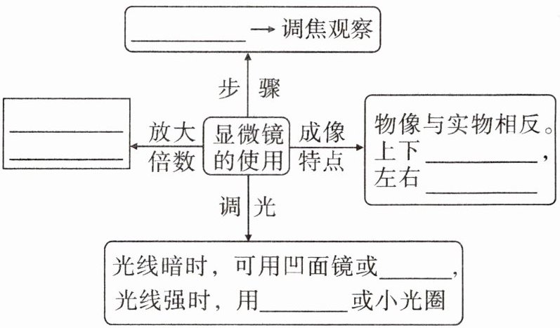 故答案依次为:对光;目镜放大倍数$×$物镜放大倍数;颠倒;相反;大光圈;平面镜。