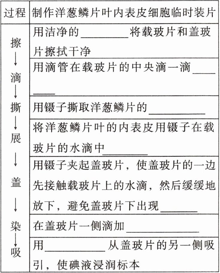 1. 制作洋葱鳞片叶内表皮细胞临时装片: