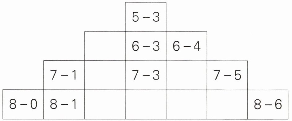 4. 下面是10以内减法表中的一部分,请你根据规律填出空格里缺少的算式,再找一找其中的规律。