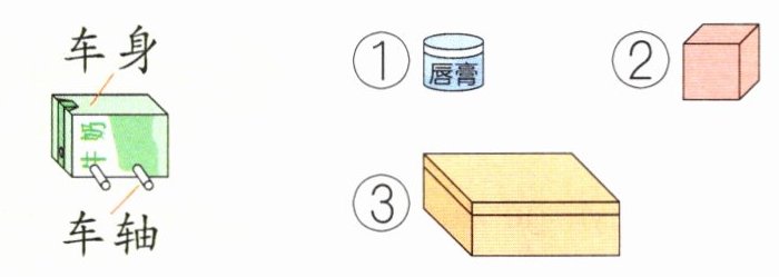 (1)才才要做一辆玩具小汽车,还差车轮,右边选项中合适的物品是(
