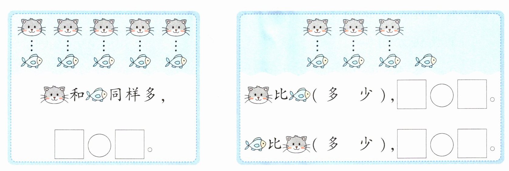5=5 少 3<4 多 4>3