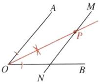 8. 新视角动手操作题如图,在直线MN上求作一点P,使点P到射线OA和OB的距离相等.(要求用尺规作图,保留作图痕迹,不必写作法和说明过程)