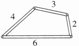 11. 情境题 生活应用 如图,用四个螺丝将四根不可弯曲的木条围成一个木框,不计螺丝大小,其中相邻两螺丝的距离依次为 $ 2 $,$ 3 $,$ 4 $,$ 6 $,且相邻两木条的夹角均可调整。若调整木条的夹角时不破坏此木框,则任意两螺丝之间的距离最大为 (