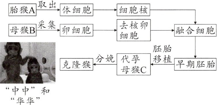 (1) “中中”和“华华”虽然是代孕母猴C生出来的,但长相却与