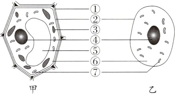 )A.与图甲相比,图乙不具有的结构是①③⑤