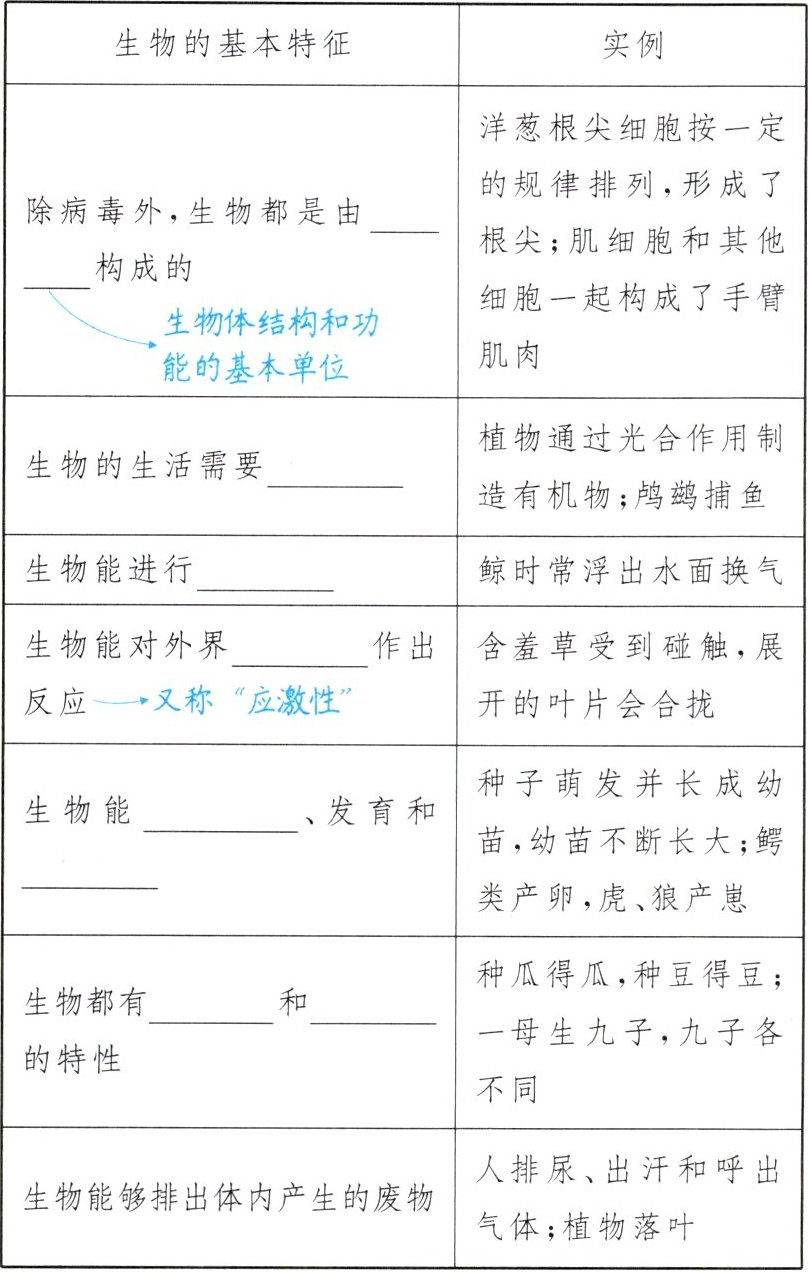 细胞 营养 呼吸 刺激 生长 繁殖 遗传 变异