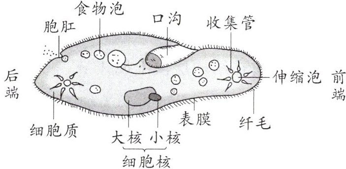 1.纤毛 2.表膜 3.口沟 食物泡 胞肛 4.收集管 伸缩泡 5.分裂 6.有利 不利