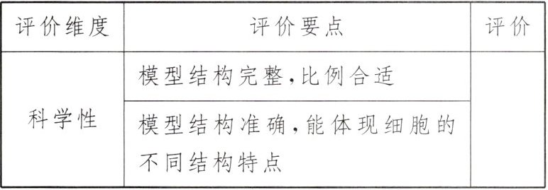 (填标号),这些结构使植物细胞具有不一样的功能。(3)细胞模型的部分评价维度如下表。