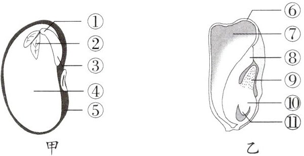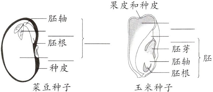5. 如图分别是菜豆种子和玉米种子的结构示意图,请据图回答下列问题。