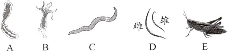 (4)E 是蝗虫,它在生长过程中有蜕皮现象,蜕掉的皮其实是它的