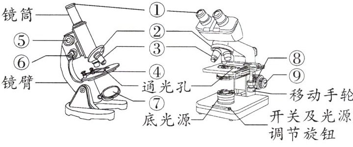 物镜对准通光孔。② 调节两个目镜间距离以适应瞳距,用