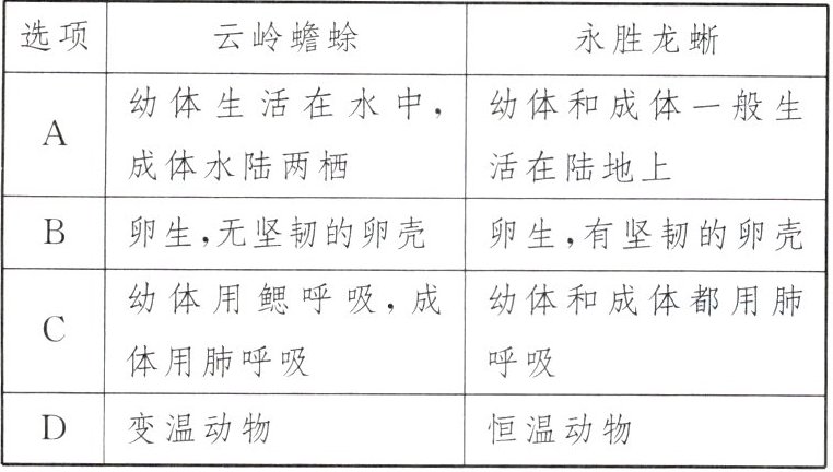 9. (昆明模拟)两栖动物云岭蟾蜍和爬行动物永胜龙蜥是云南近年来发现的新物种。下列对两种动物的比较中,错误的是(