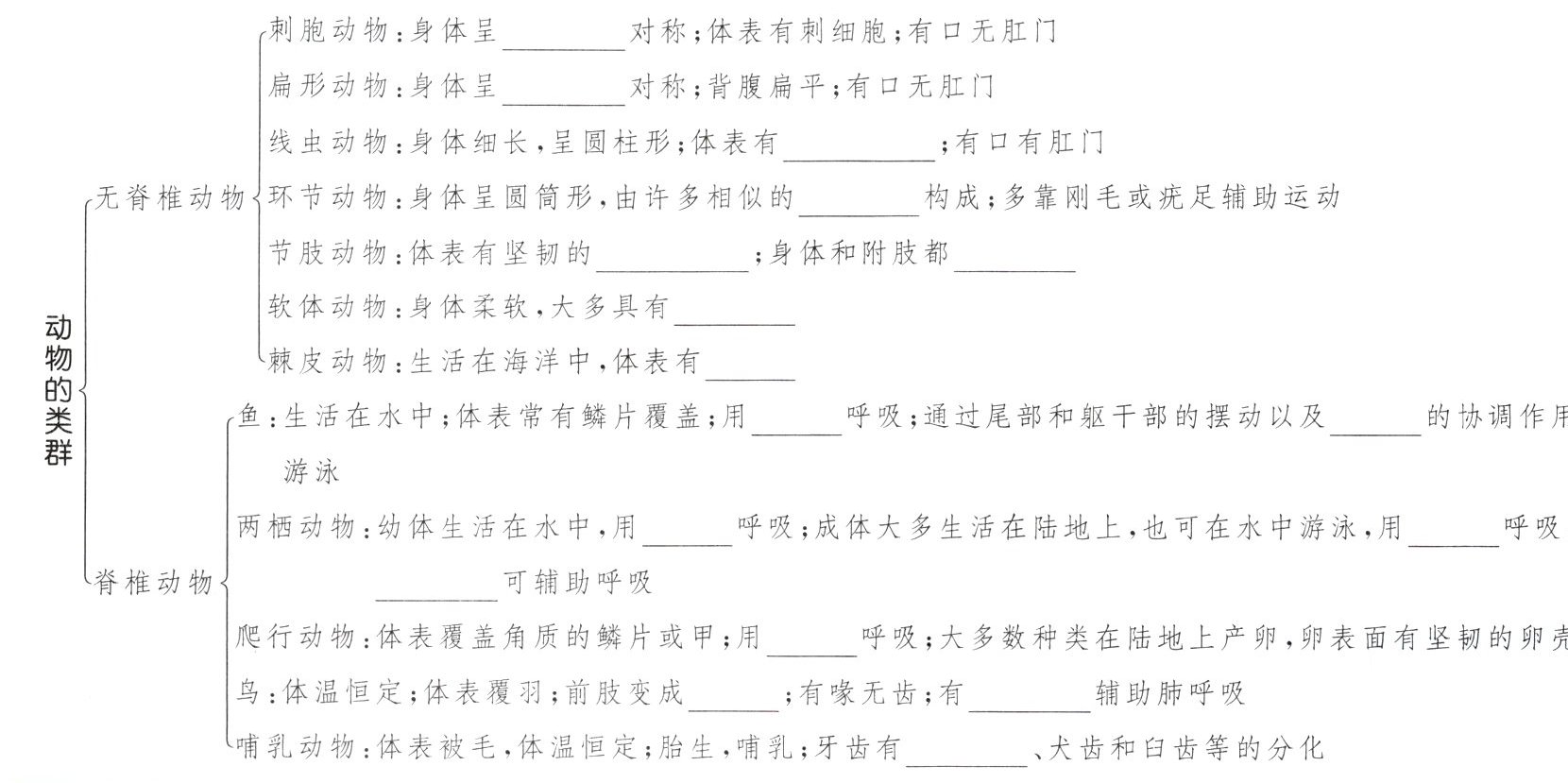 辐射 两侧 角质层 体节 外骨骼 分节 贝壳 棘 鳃 鳍 鳃 肺 皮肤 肺 翼 气囊 门齿
