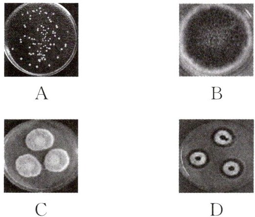 1. [教材P99图片变式]某生物兴趣小组做了菌落培养的实验,请你判断下列菌落中属于细菌菌落的是(