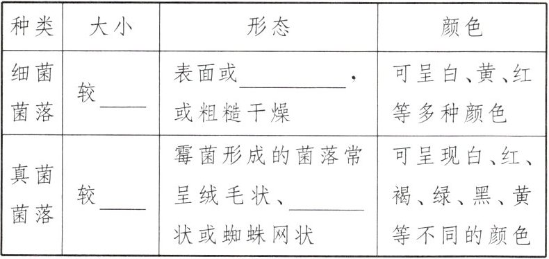 1.细菌或真菌 2.小 光滑黏稠 大 絮