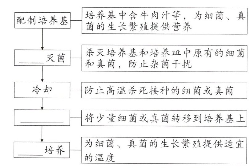 4. (天津中考)在“检测环境中的细菌和真菌”实验中,用无菌棉棒擦拭手心,在培养基上轻轻涂抹,这相当于细菌和真菌培养方法中的(