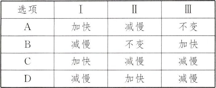 9. 科学思维分析(焦作模拟)用培养液培养三种细菌,让它们在三支不同的试管中生长,如图显示了细菌的生长层。如果此时往三支试管中通入氧气,则细菌的繁殖速度可能发生的变化是(