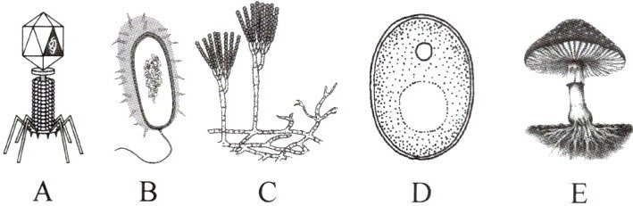 8. 细菌、真菌和病毒会对人类的健康造成危害,如果科学地加以利用,也会造福人类。如图为几种微生物的结构示意图,请据图回答下列问题。