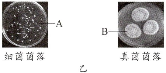。如图乙是细菌和真菌的菌落,醋酸菌形成的菌落与图乙中的A