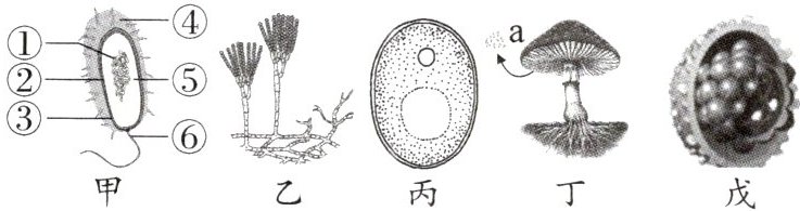 (3)与植物叶肉细胞相比,图丁的细胞中没有