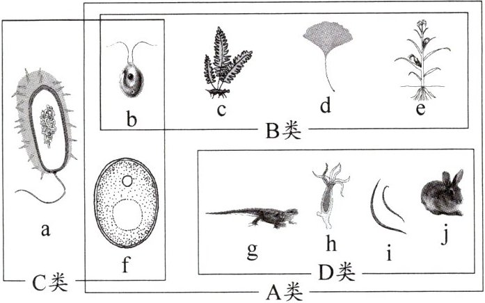9. 生物分类就是依据某一标准将生物分门别类,是研究生物的一种基本方法。如图是将不同生物分为A、B、C、D四类的示意图。
