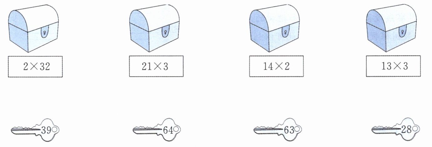 $21×3=63$,所以$21×3$与$63$钥匙相连;