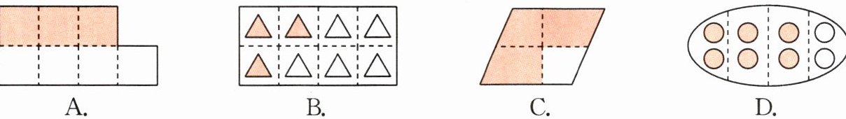(1)下面各图中,涂色部分能用$\frac{3}{4}$表示的是(