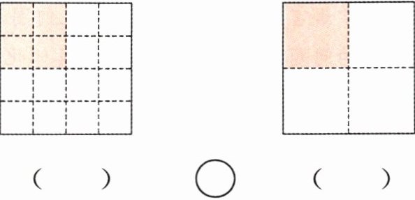 典型例题 先写出下面各图形中阴影部分所表示的分数,再比较大小。