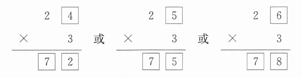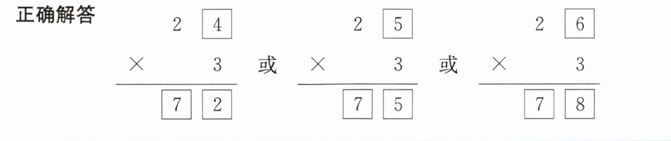 方法总结 解决此类问题时,要明确题目要求,可以运用表内乘法确定满足条件的所有答案,考虑要全面,不能遗漏答案。