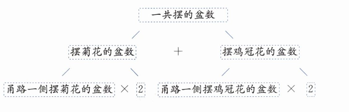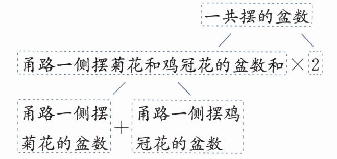 典型例题 学校为了美化环境,决定在甬路两侧各摆56盆菊花和38盆鸡冠花。一共摆了多少盆花?