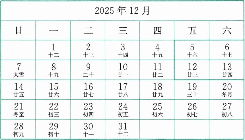 观察框起来的4个数,它们分别是5,6,12,13。5,6分别是12月中第一周的星期五和星期六,12,13分别是12月中第二周的星期五和星期六,这4个数左右相邻、上下相邻,左右相差1,上下相差7。另外,对角的两个数相加的和相等。