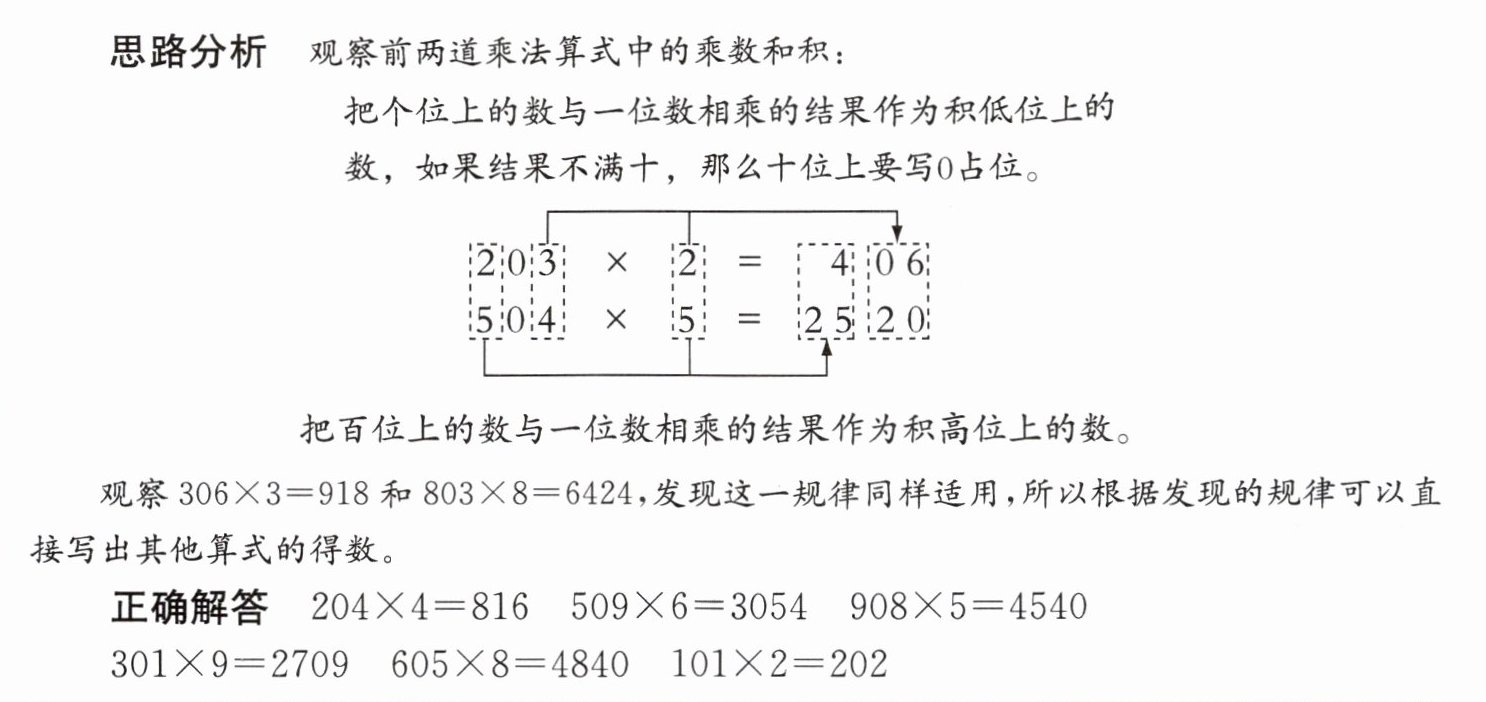 方法运用 运用归纳法解决乘数中间有0的乘法巧算问题