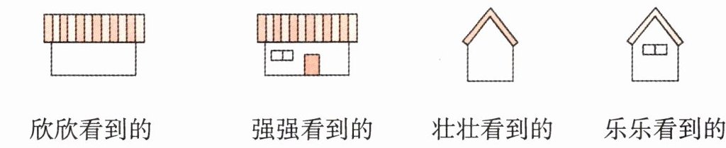 4 辨析题 有一间房子,欣欣、强强、壮壮、乐乐从不同的角度看到的情况如下图。