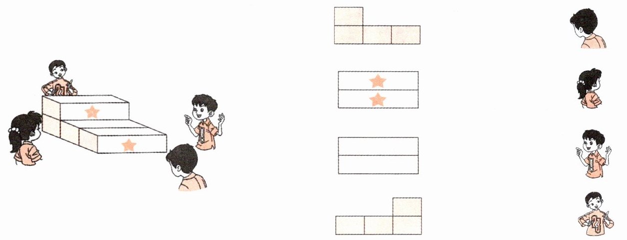 5 探究题 下面的图形分别是哪个小朋友看到的?连一连。