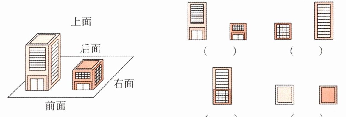 二、下面的四幅图分别是从哪一面看到的?填一填。(6 分)