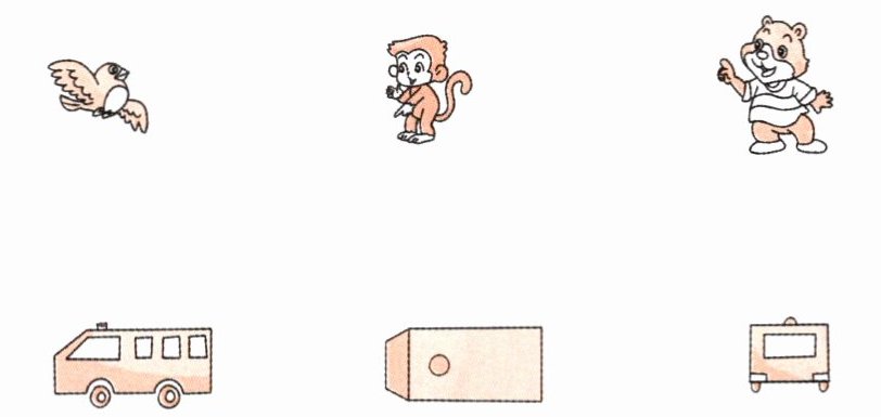 一、小象在百米赛跑中受伤了。小鸟站在树上打电话叫来了救护车,救护车停在小猴的旁边,小熊在车后面大声喊:“让小象从这里上车。”它们各自看到了什么?连一连。(4 分)