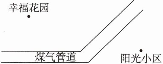 5. 生活运用题:幸福花园和阳光小区准备分别安装煤气管道,为了使安装的煤气管道最短,你能设计出煤气管道的安装路线吗?请你画出来。