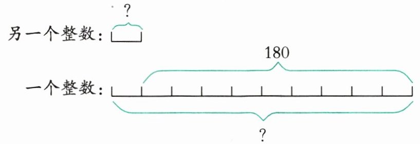 思路分析 由“一个整数的个位上是0,若把0去掉,则与另一个整数相同”可知,一个整数是另一个整数的10倍,它们的差180是较小数的$(10 - 1)$倍。用线段图表示如下: