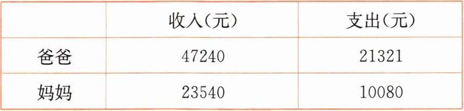 (3)(答案不唯一)今年上半年爸爸的收入比妈妈的收入多多少元?