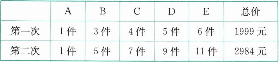 6 生活运用题 | 学校购买A、B、C、D、E五种教具,购买情况如下表。