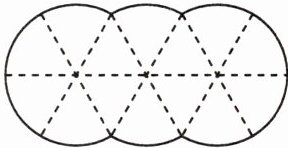 4. 易错题 右面是用三个大小相等的圆组成的图案,这个图案可以分割出10个圆心角是60°的扇形,照这样用五个大小相等的圆组成的图案可以分割出(
