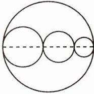 典型例题:右图中大圆的周长与大圆中三个小圆的周长之和相比,谁长?(图中的虚线是大圆的直径,也是三个小圆的直径之和。)