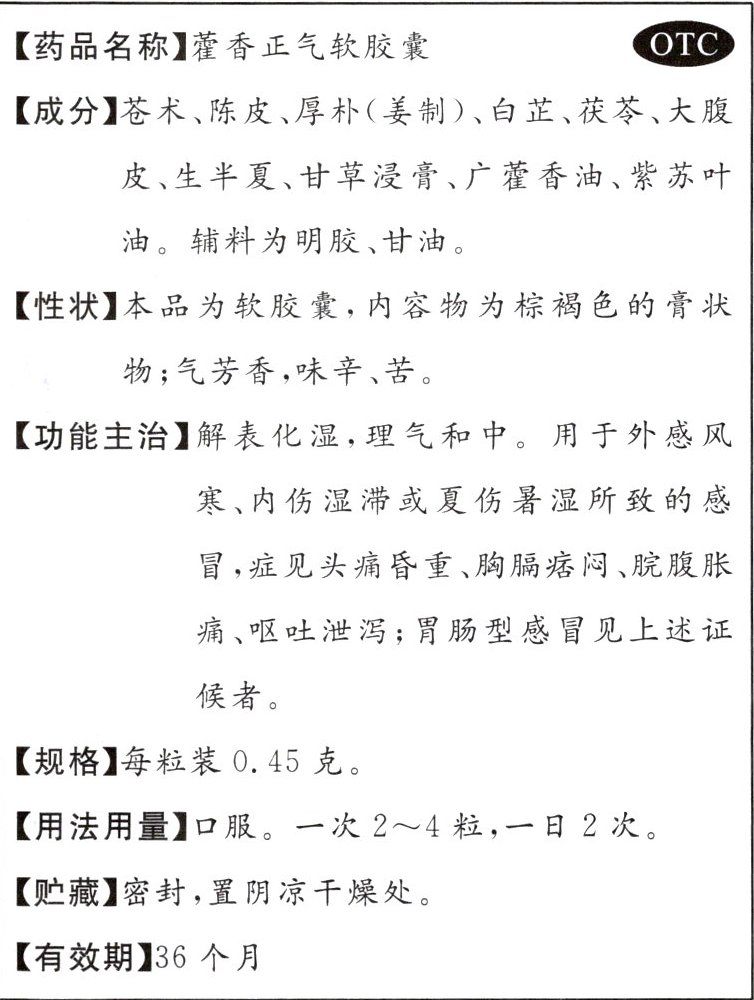 7. 如图是“藿香正气软胶囊”说明书的部分内容,请阅读并回答下列问题:
