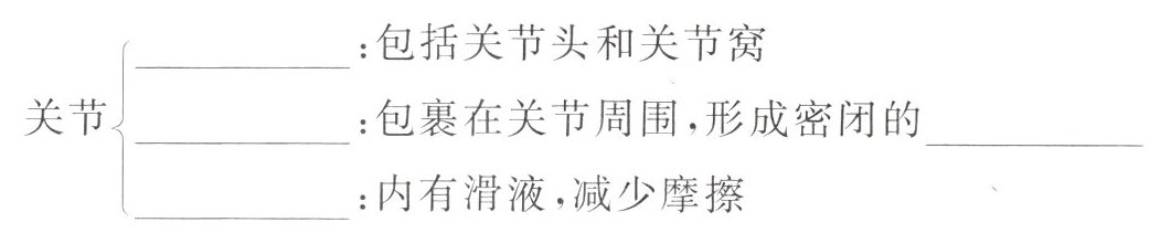 )①关节面上有光滑的关节软骨 ②关节腔内有滑液 ③关节囊里面有坚韧的韧带 ④关节囊外面有坚韧的韧带